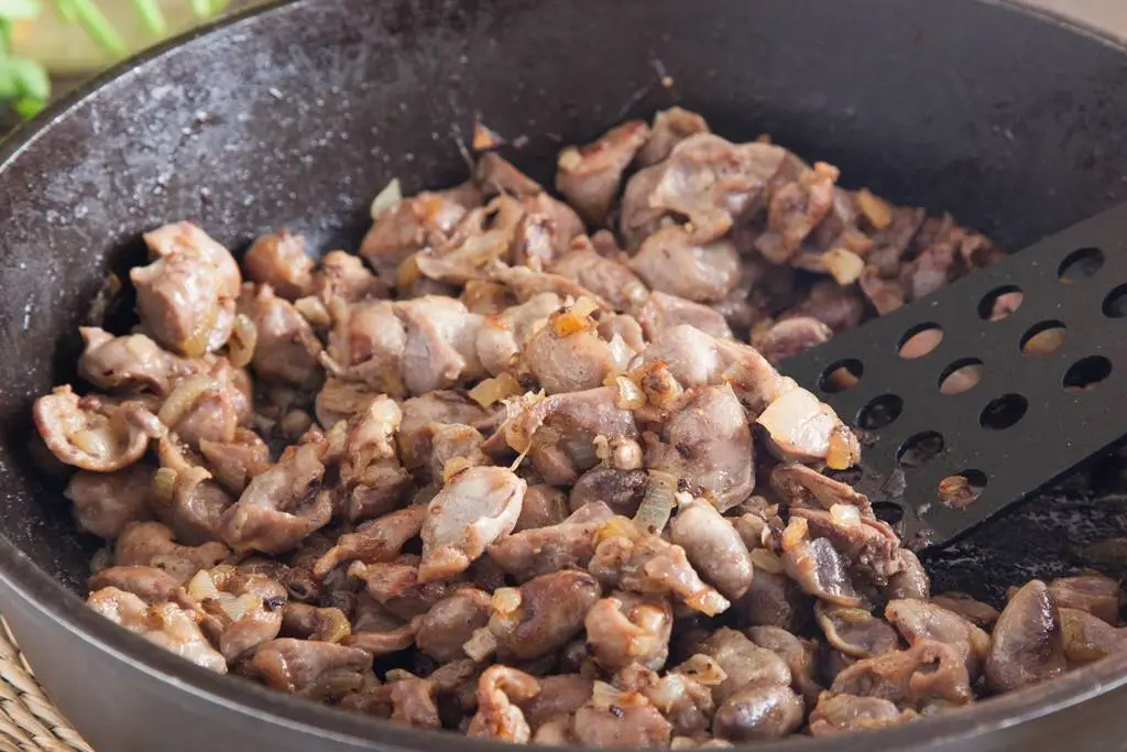 Желудки и сердечки промойте, нарежьте небольшими кусочками.