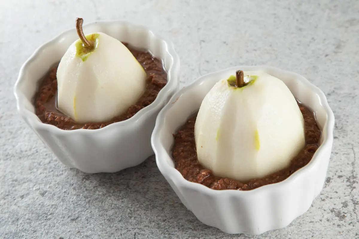 Поставьте в разогретую до 180 градусов духовку, выпекайте 20-30 минут, проверяя грушу на готовность. Она должна стать мягкой. Подавать лучше в чуть остывшем виде с греческим йогуртом, мягким творогом и по желанию сиропом из фиников.