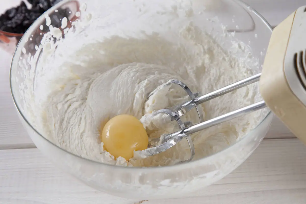 Добавляйте желтки по одному, каждый раз тщательно взбивая, масса должна быть однородной.