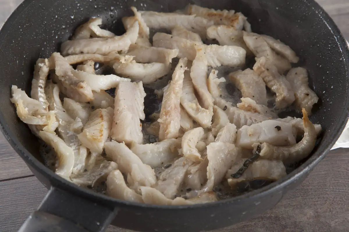 Затем порциями обжаривайте рыбу по две-три минуты.
