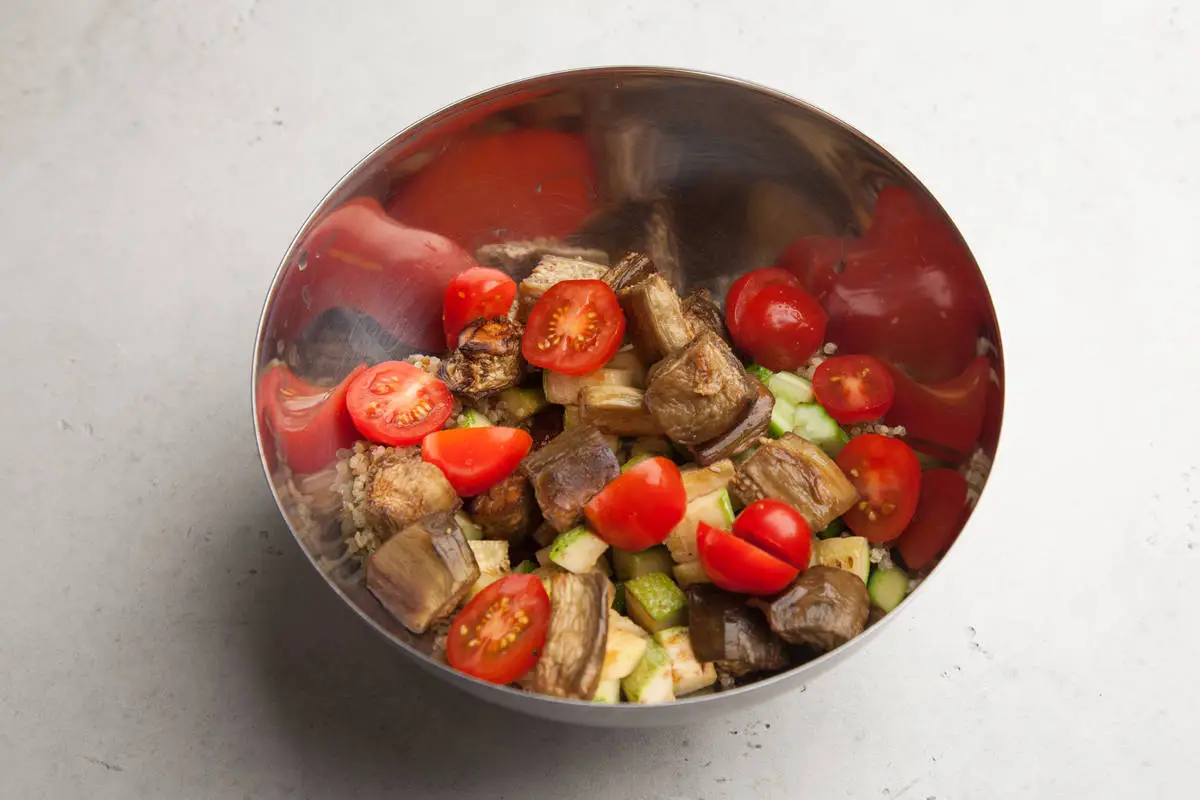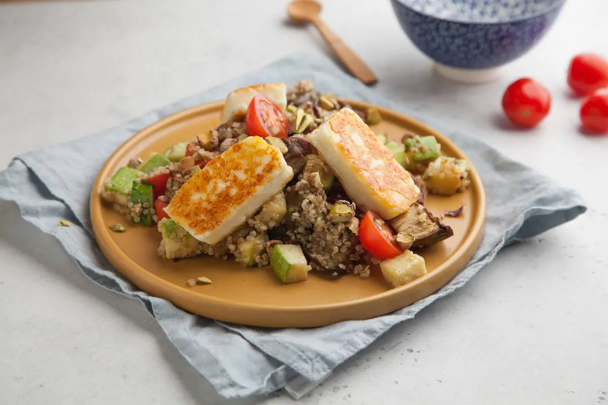 Салат Табуле с овощами гриль, сыром Халумис и фисташками