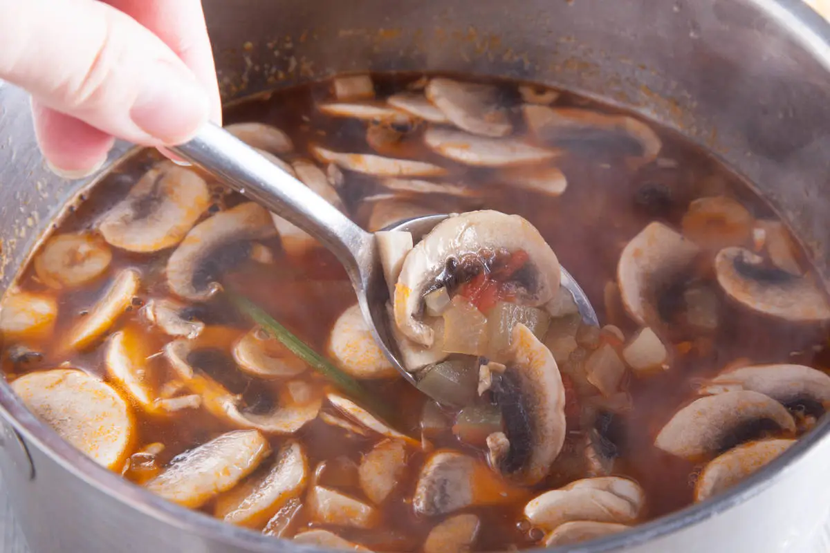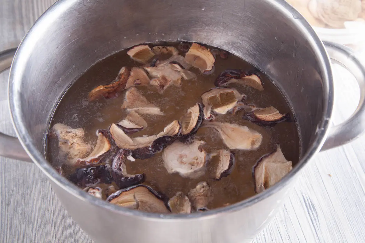 Добиться насыщенного и яркого островато-кисловатого вкуса солянки можно не только использовав мясные остатки, но и в постном варианте — из грибов. Если к сушеным белым и шампиньонам добавить еще и несколько маринованных или соленых грибочков, получится совсем хорошо!