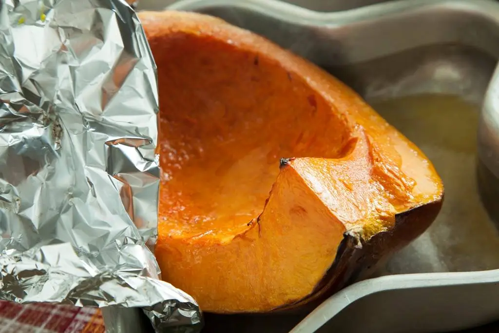 Кусок тыквы нужного веса очистите от семян, положите в форму для духовки, накройте фольгой и запекайте при 170-180 градусов до мягкости (час-полтора).