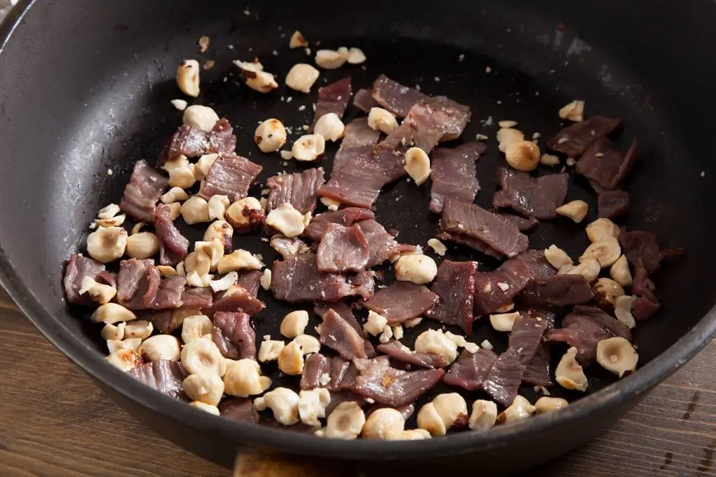 Жареный фундук расколите скалкой или в ступке на крупные кусочки, посыпьте ими готовый суп и подавайте!