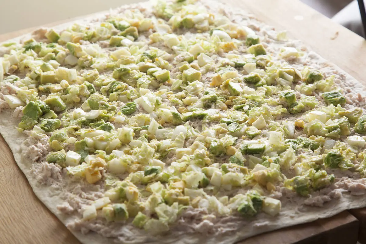 Один из вариантов всеми любимых закусочных рулетов из лаваша — с тунцом и греческим йогуртом вместо майонеза.
